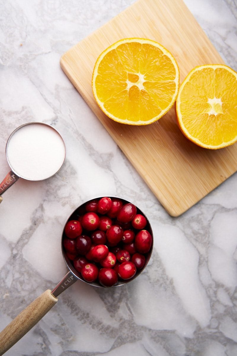 - Oranges: We will use 2 oranges for this recipe, they brighten up the cranberry relish for and make a delicious citrusy topping.