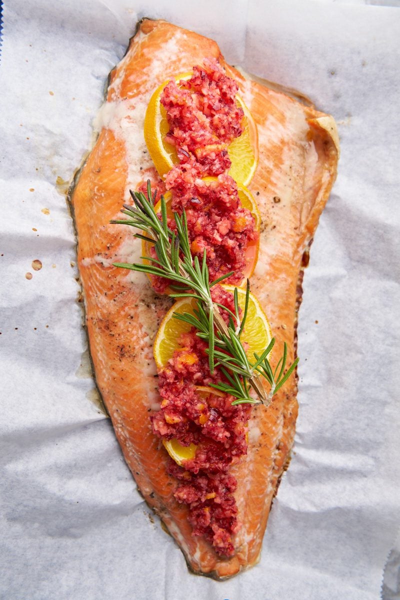 This festive oven baked salmon with cranberry orange relish requires very little prep, minimal ingredients and it delivers restaurant-worthy flavor in just 20 minutes.