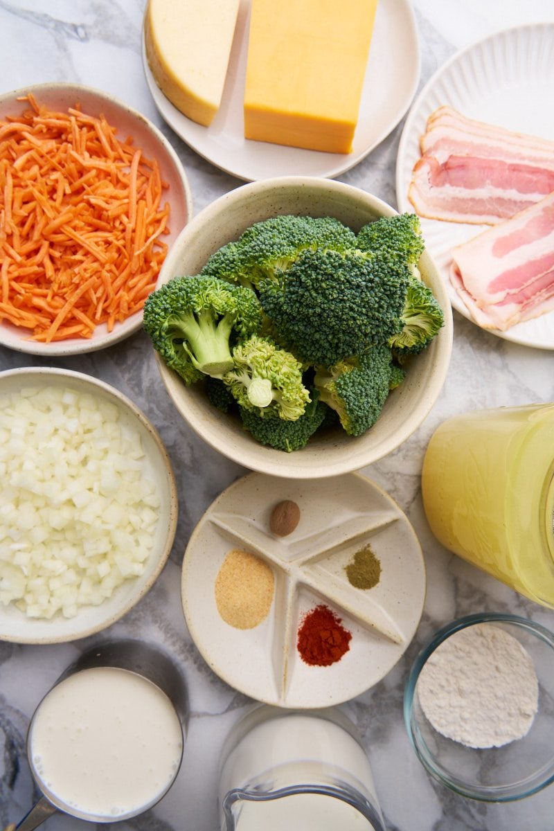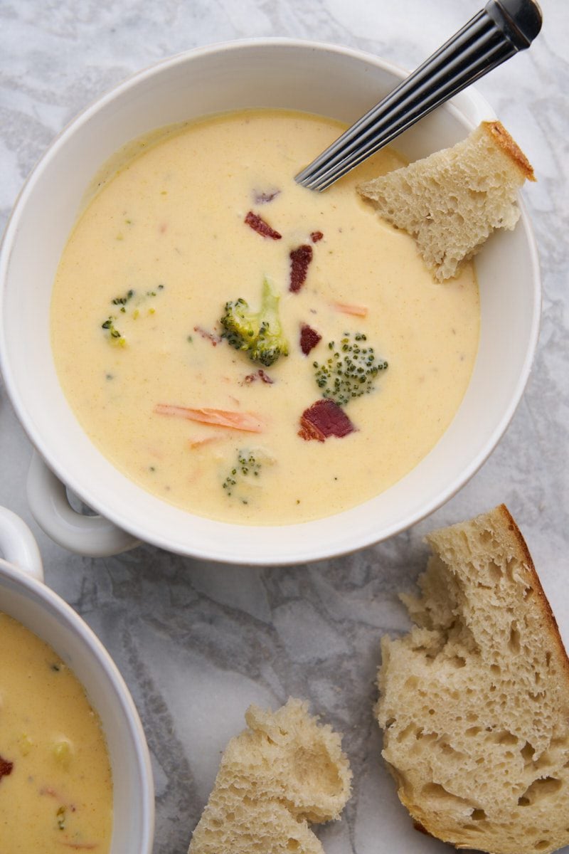 Roasted broccoli, shredded carrots, and crispy bacon come together in a velvety cheese base to create a soup that's truly full of flavor.
